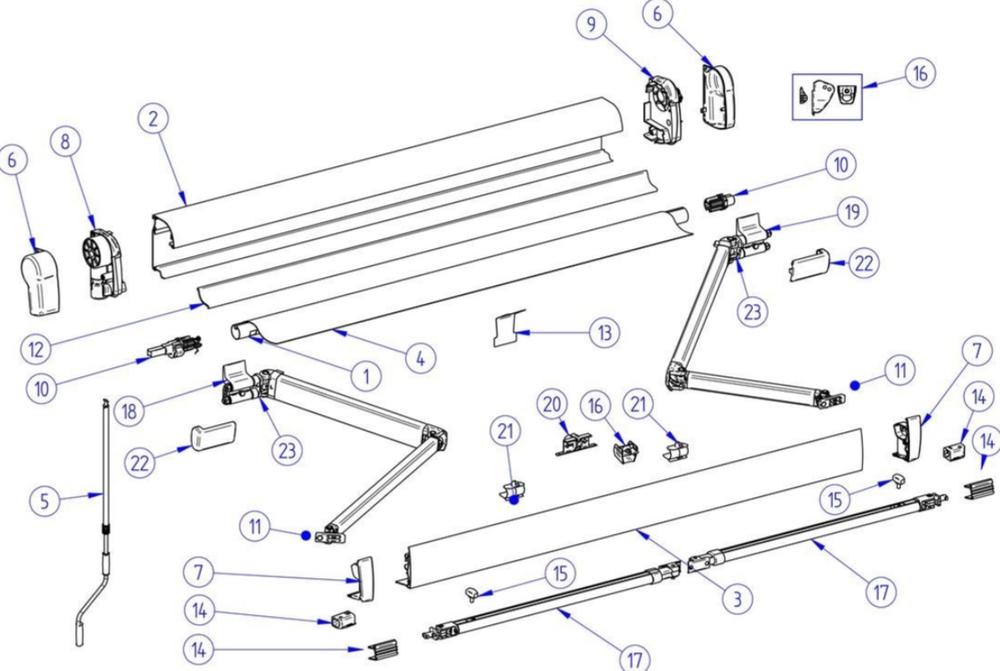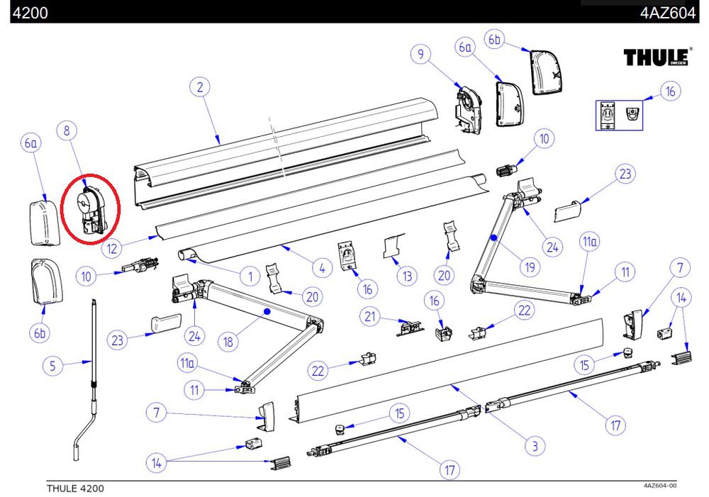 Recambio Base con molinete izq. toldo Thule 4200 Anonizado