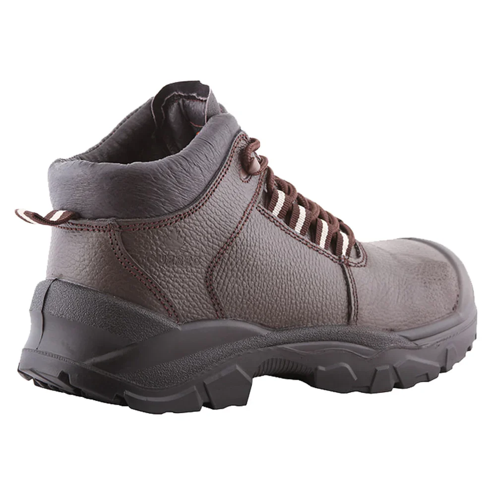 - Bota de seguridad color café capellada en cuero descarne estampado