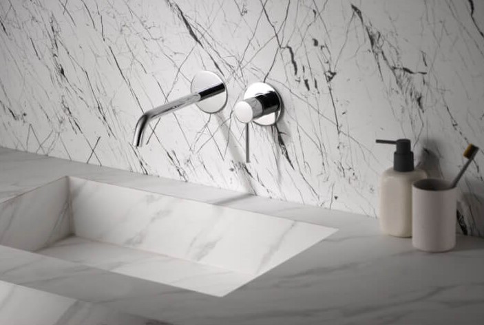 • Grifería empotrada monomando.