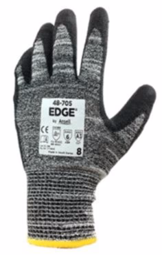 - Guante de HPPE, spandex, fibra de vidrio, nylon, poliéster con palma recubierta de poliuretano que otorga muy buen agarre, destreza y muy buena resistencia a los cortes