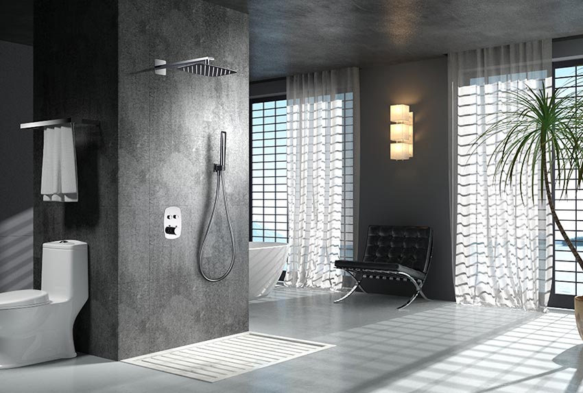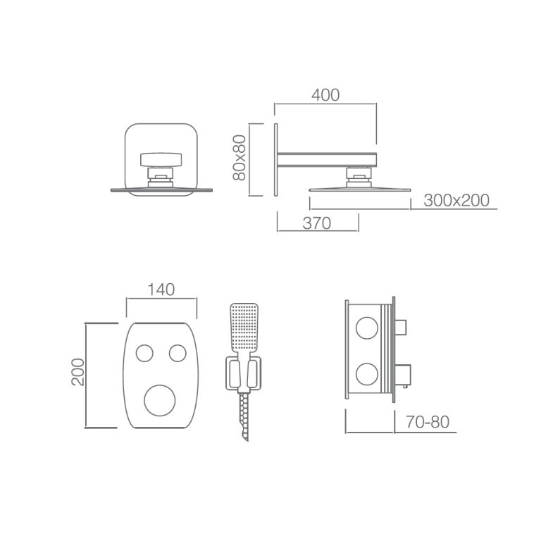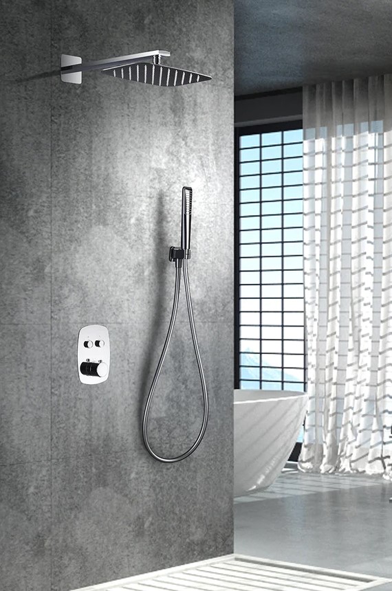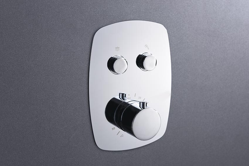 - Grifer铆a termost谩tica de lat贸n cromado, 2 v铆as con pulsadores y caja de registro.