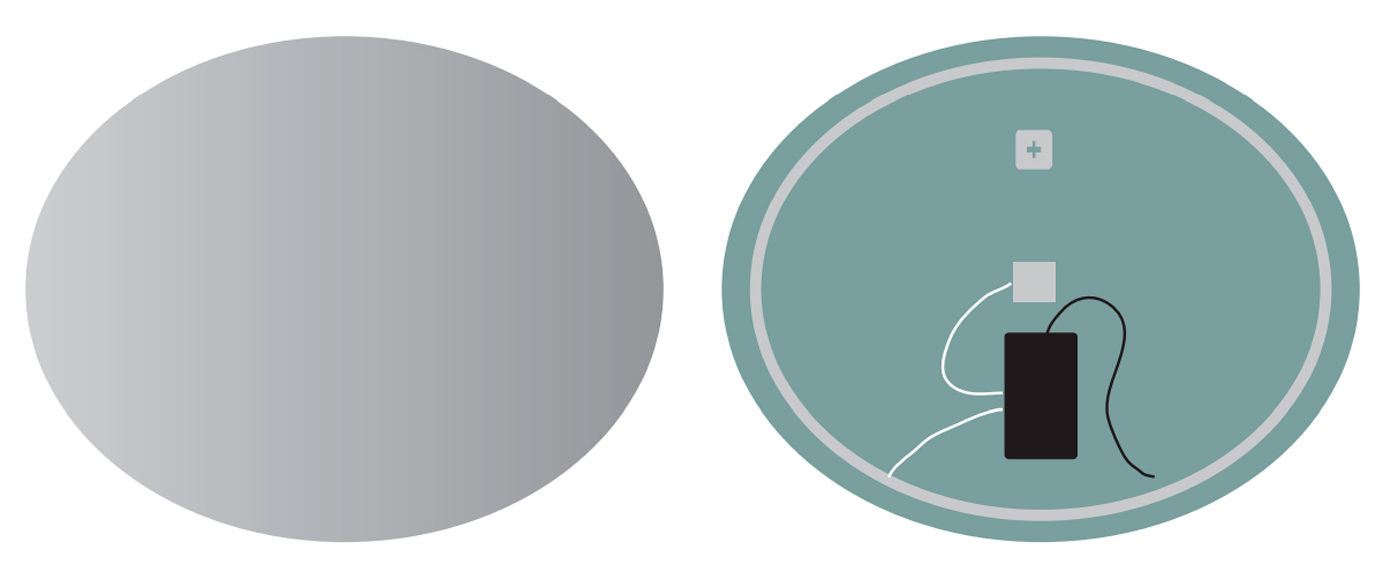 Espejo ovalado, retroiluminado de luz fría.