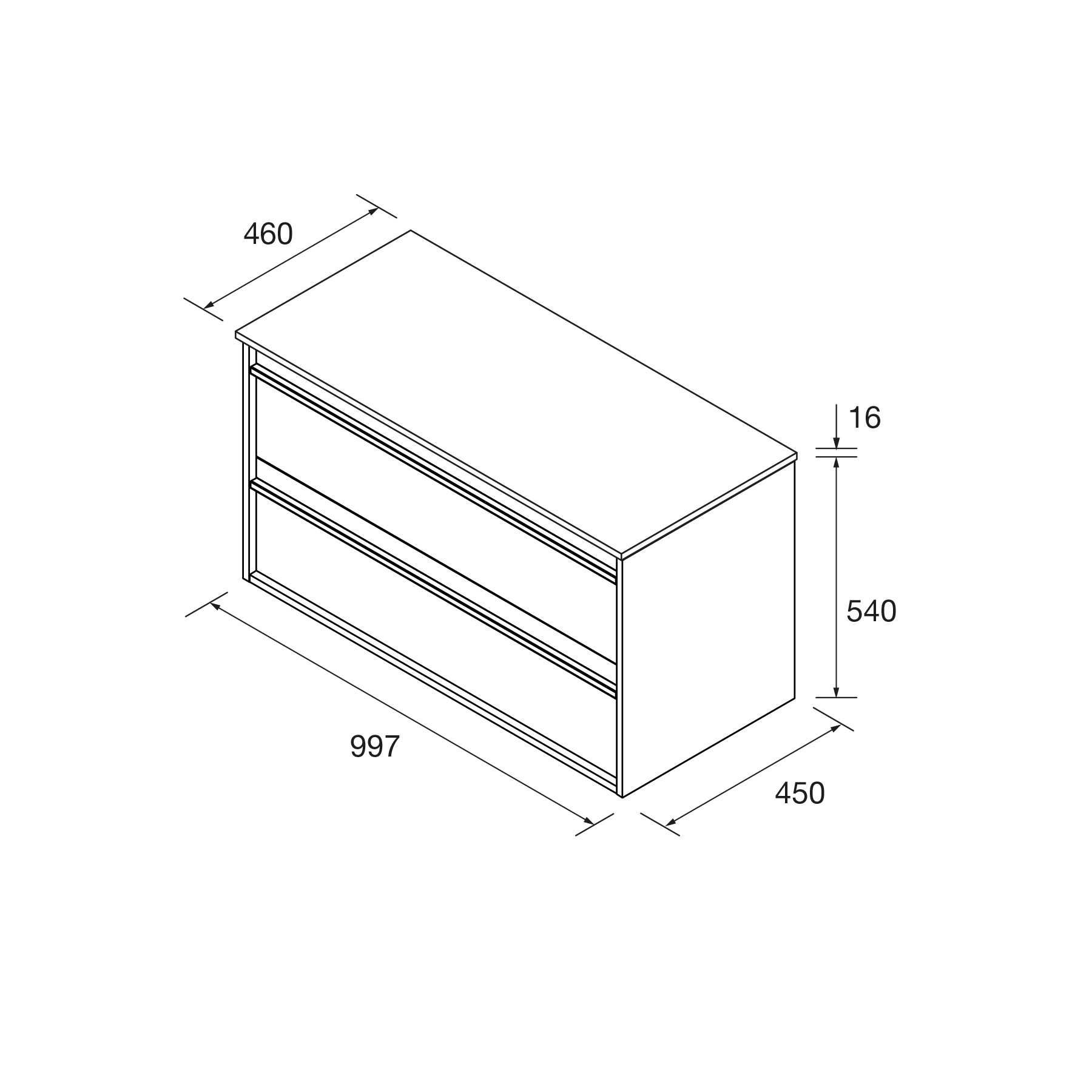 • Frente y laterales聽fabricados en tablero de part铆culas laminado de 16 mm (clase E-1) con cantos en PVC (con cola PUR).
