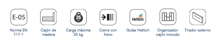 Adem谩s, incluyeel organizador de caj贸n e incorpora gu铆as HETTICH con cierre amortiguado.