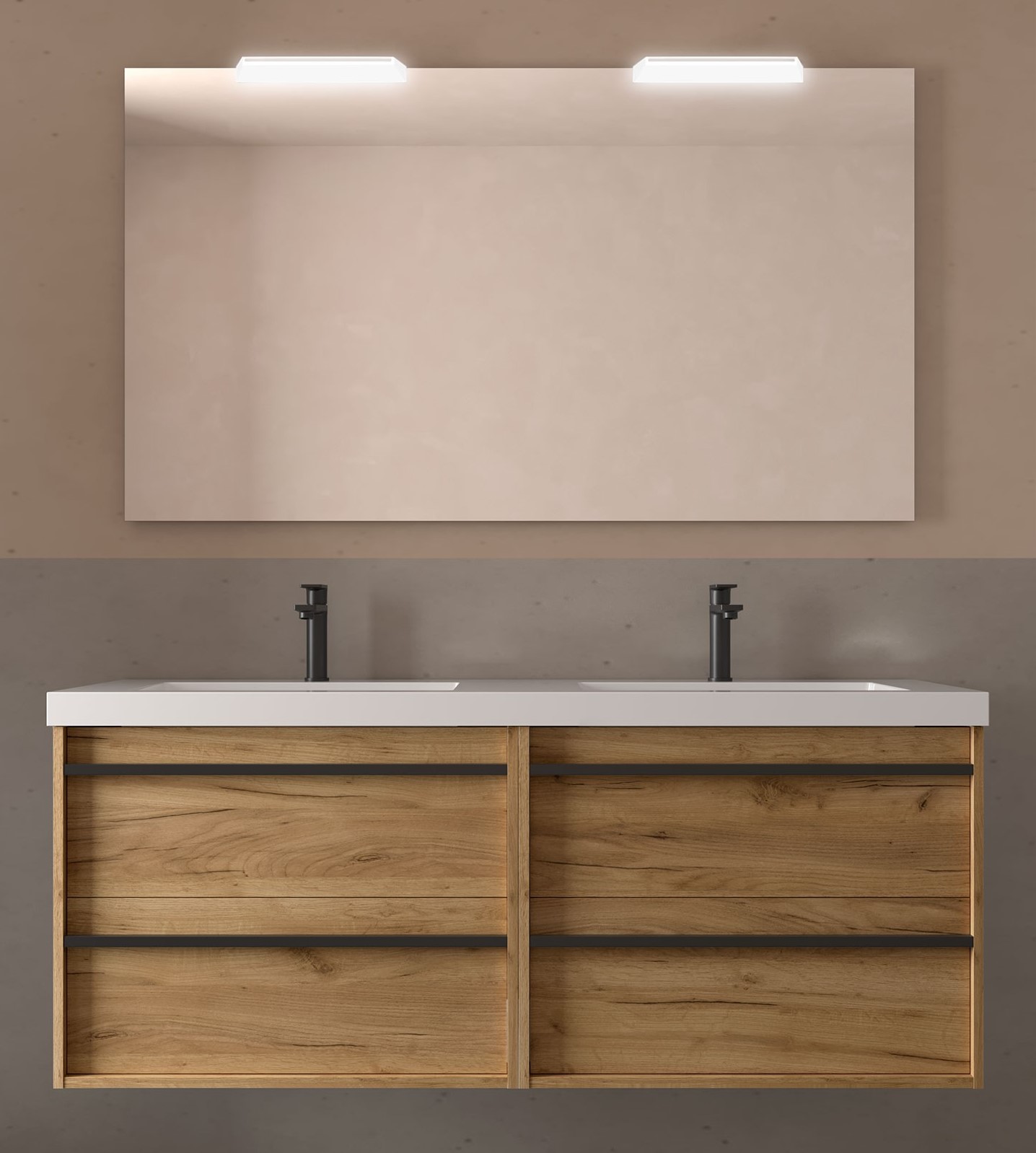 El conjunto de mueble de ba帽o est谩 formado por el mueble de ba帽o y el lavabo integrado.