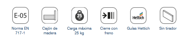 Los cajones de la serie poseen cierre amortiguado y guías Hettich garantizando la suavidad de funcionamiento y calidad.